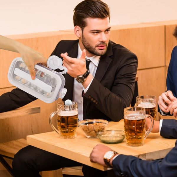 Transforme as suas bebidas em obras de arte! Adicione a sua cor ou bebida favorita na garrafa e obtenha bolas de gelo coloridas para aumentar os desejos. Desta forma, pode dar um toque elegante a qualquer copo, tornando-o perfeito para impressionar os convidados durante festas ou ocasiões especiais. Quer seja um dia de verão abrasador ou uma noite acolhedora, desfrute das suas bebidas tal como gosta.