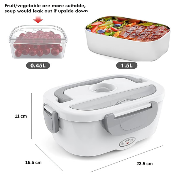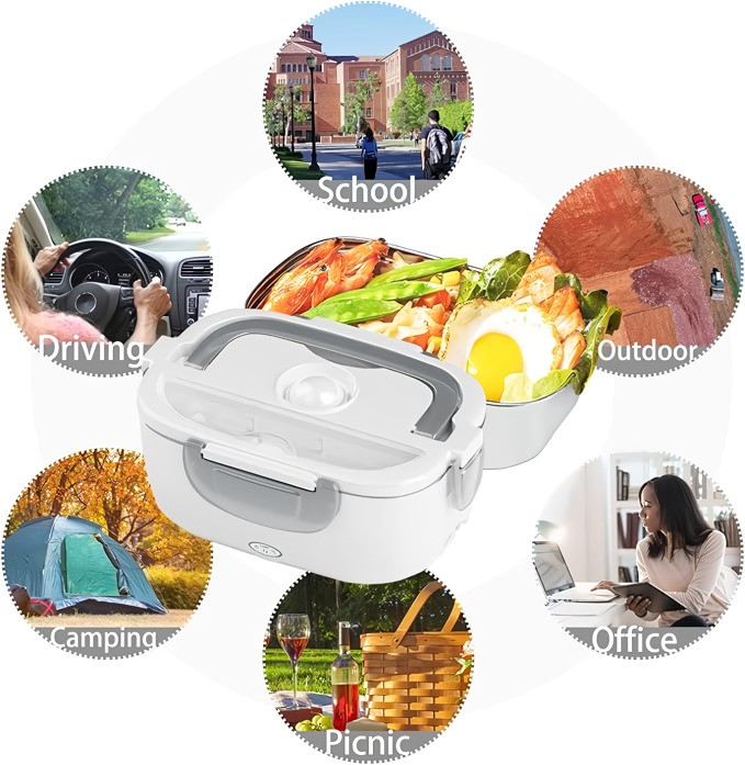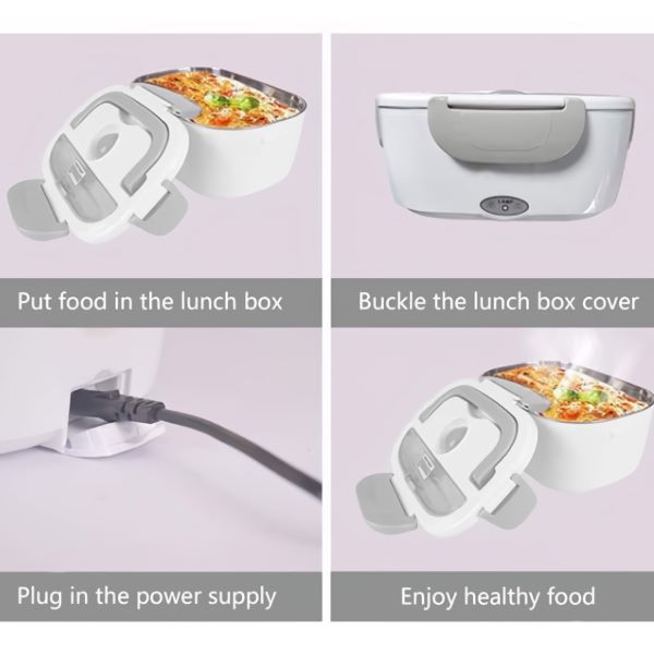 Recipiente de comida aquecido 3 em 1 Está cansado de comer refeições frias no trabalho, no carro ou em viagem? O nosso aquecedor de comida portátil, a lancheira aquecida, foi concebido especialmente para si. Inclui uma ficha da UE, tornando-o ideal para utilização em escritórios, fábricas ou escolas.