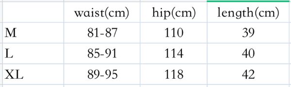 Tamanho: XL – Cintura 89-95 cm – Anca 118 cm – Comprimento 42 cm