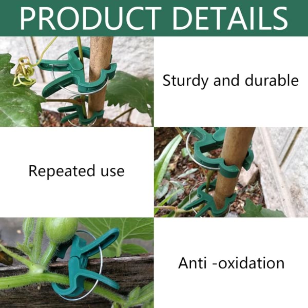 Mantenha suas plantas seguras com clipes e laços reutilizáveis e resistentes ao vento.