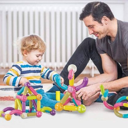 O uso de blocos magnéticos pode melhorar a imaginação da criança e habilidades tecnológicas e matemáticas, ao mesmo tempo que promove a coordenação mão-olho, consciência espacial, motricidade fina e paciência.