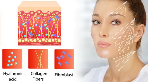 - Pode ajudar a proporcionar um efeito de elevação na linha do maxilar, papada, pescoço, área sob os olhos, sobrancelhas, bochechas, pés de galinha, músculos das maçãs do rosto, etc.