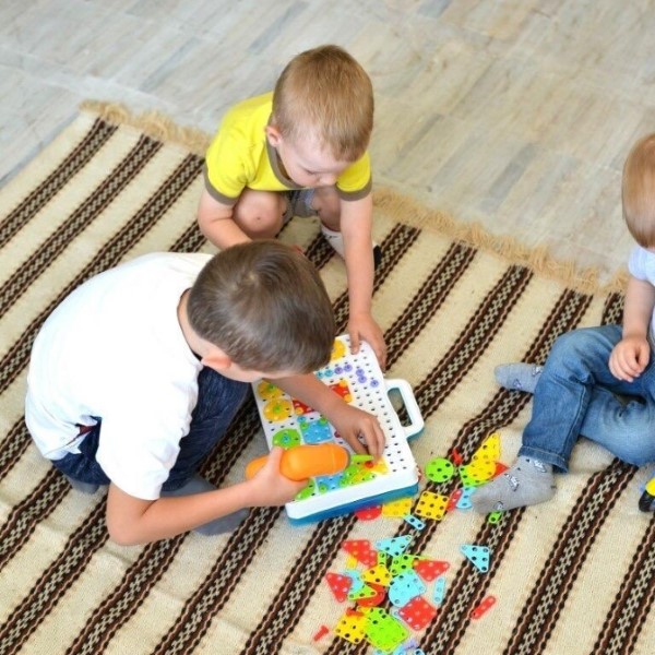 Ao fixar os parafusos nas placas criando vários padrões, o brinquedo artístico com parafusos ajuda a criança a desenvolver a relação entre a coordenação visual e motora, a motricidade fina e o pensamento criativo. O kit de blocos vem com um guia prático ilustrado e um recipiente plástico para uma limpeza e arrumação fáceis.