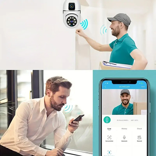 Com o altifalante incorporado na BULBCAM, pode falar diretamente através do telemóvel com qualquer pessoa que esteja à sua porta. Também pode dar instruções ao pessoal de entrega ou até mesmo orientar os convidados se estiver ocupado ou ausente, facilitando o gerenciamento de visitantes de qualquer lugar.