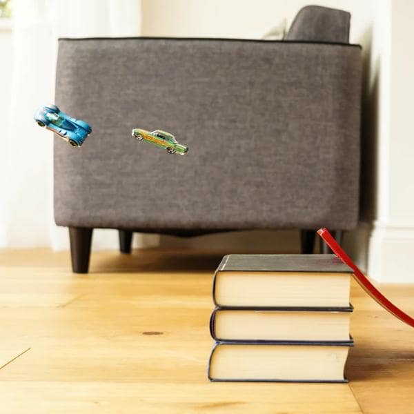 Seja criativo com objetos domésticos para criar curvas, saltos, túneis e loops para maior emoção.
