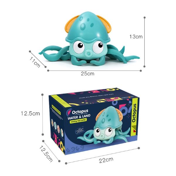 Transforme a hora do banho numa experiência emocionante. Dê corda ao polvo no sentido dos ponteiros do relógio e solte-o na água. Veja como as suas pernas ondulantes se movem automaticamente, remando-o para a frente com diversão e entusiasmo.