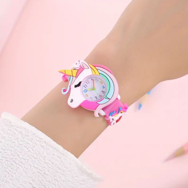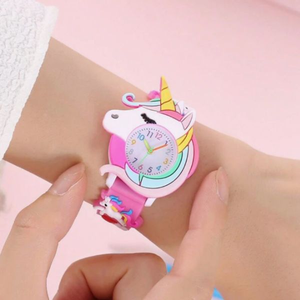 Um relógio com unicórnio cor-de-rosa encantador que dá vida a todas as aventuras!