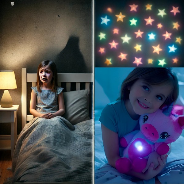 Pode mudar as cores das estrelas com um simples toque no botão. Com 6 cores ajustáveis e uma projeção de movimento lento, cria um ambiente festivo e tranquilo que ajuda a reduzir o medo do escuro.